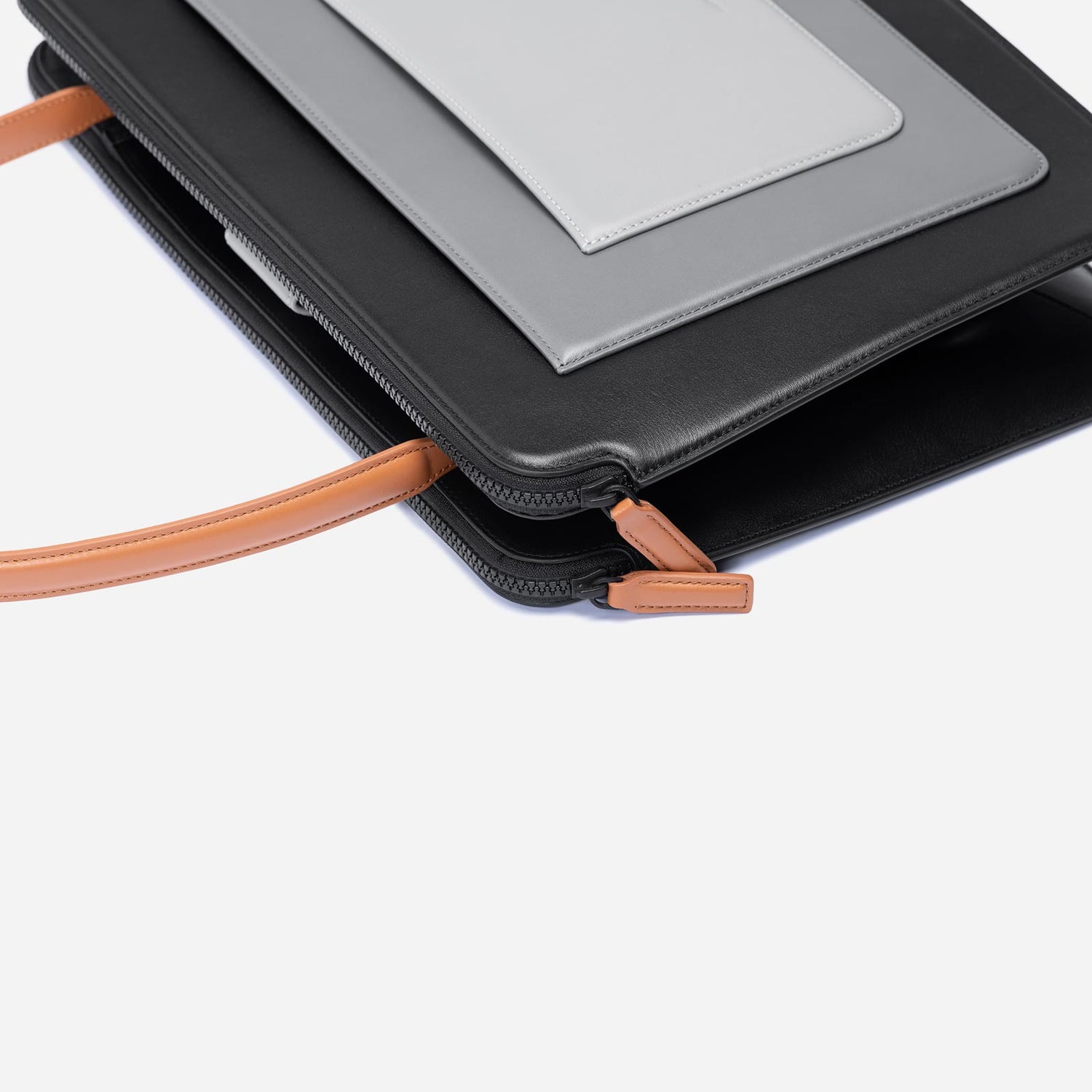 Crafted from Italian cow leather. Soft coating zippers ensure your laptop won't get scratched.