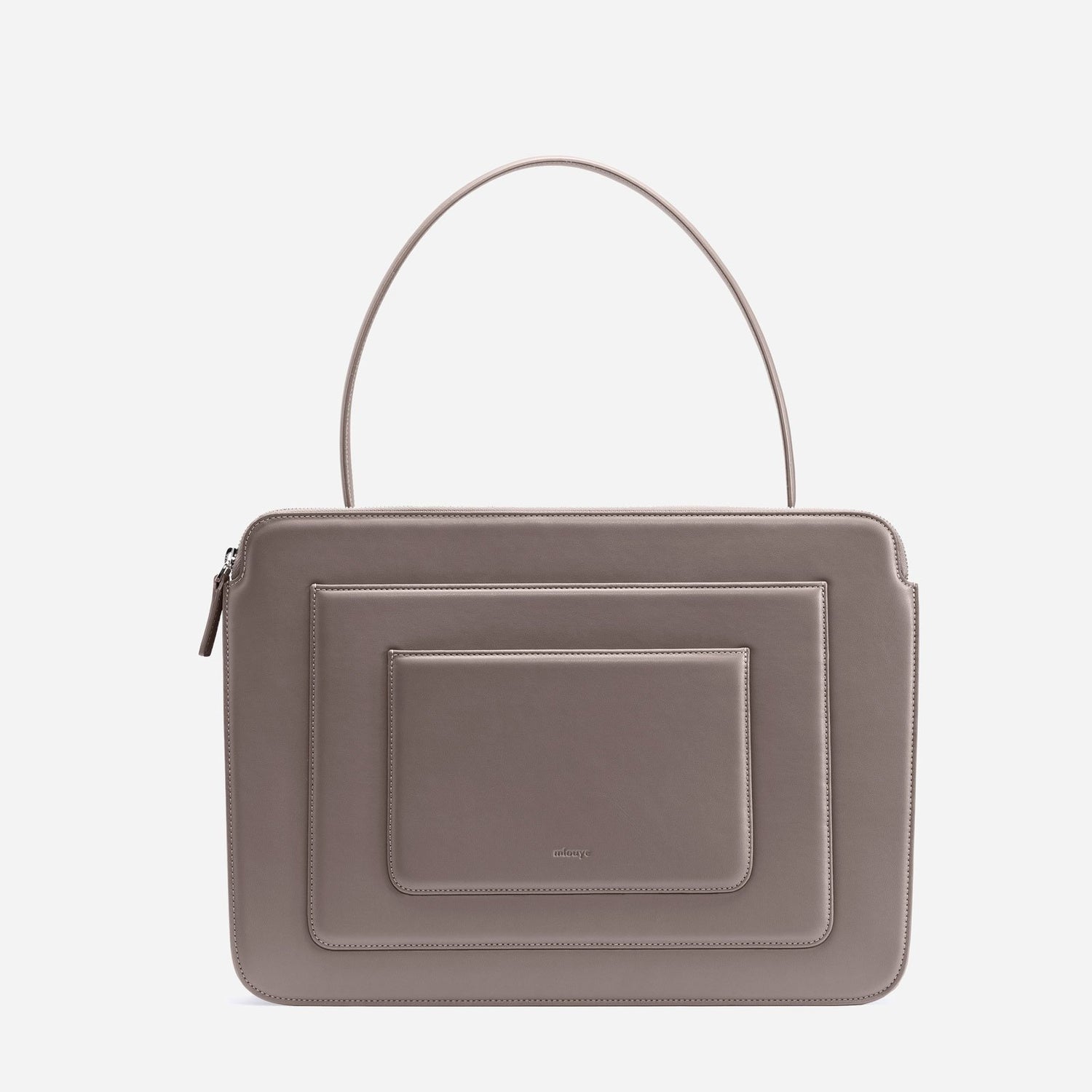 Designed in a silhouette inspired by Art-Deco style, this bag is expertly crafted from Italian calf leather with microsuede lining. Packs a ton of features in a slim, compact space so you can carry your office life in the bag — including a 16” Macbook Pro. It has additional two tight slots on the front that you can fit your notebook, phone or tablet.