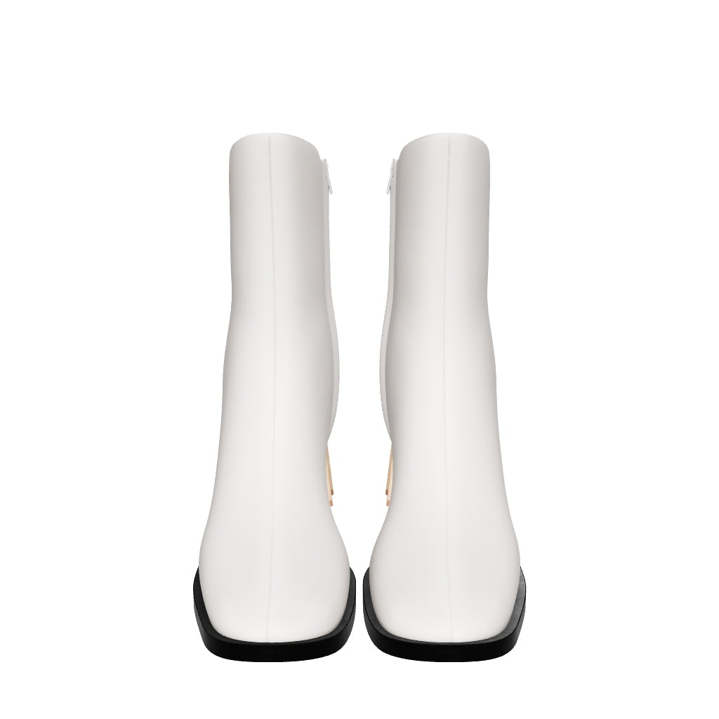 The Pleated Heel Boots take a cue from our iconic Pleated Lantern Bag, but this time, reimagining pleats using solid oak. Features a square toe and a padded insole for extra comfort.