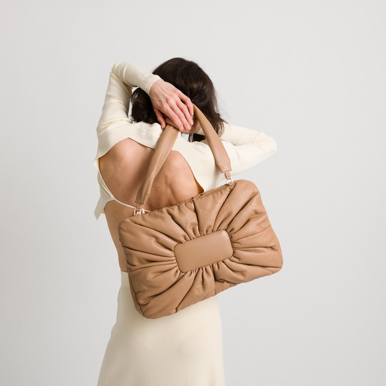 A streamlined approach to daily essentials: The Puff is a super soft and organic clutch designed to hold your laptop and all your office essentials. This lightly padded, soft-as-a-pillow carry-all comes in two sizes: 13” and 16” to fit most laptops.