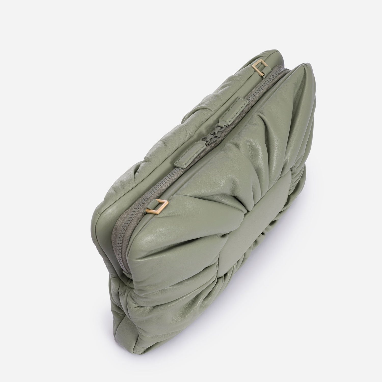 A streamlined approach to daily essentials: The Puff is a super soft and organic clutch designed to hold your laptop and all your office essentials. This lightly padded, soft-as-a-pillow carry-all comes in two sizes: 13” and 16” to fit most laptops.